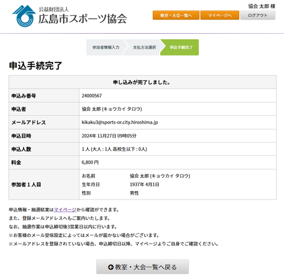 以上でお申し込みは完了です。抽選の場合はメールにて抽選結果をお知らせいたします。