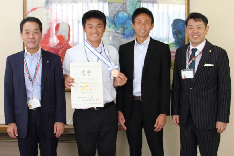 熊本県で開催された、第73回天皇杯・皇后杯全日本ソフトテニス選手権大会で3位になった、NTT西日本ソフトテニス部の広岡宙(そら)選手が、結果報告に本協会を訪問されました