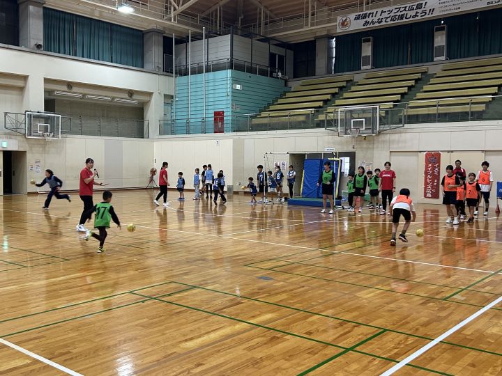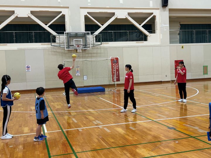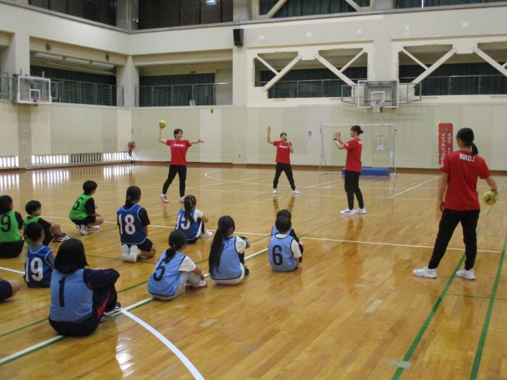 10月25日(土)、イズミメイプルレッズ広島から倉岡選手、加納選手、安藤選手、石川選手、大田選手の5名にお越しいただきハンドボールクリニックを開催しました。