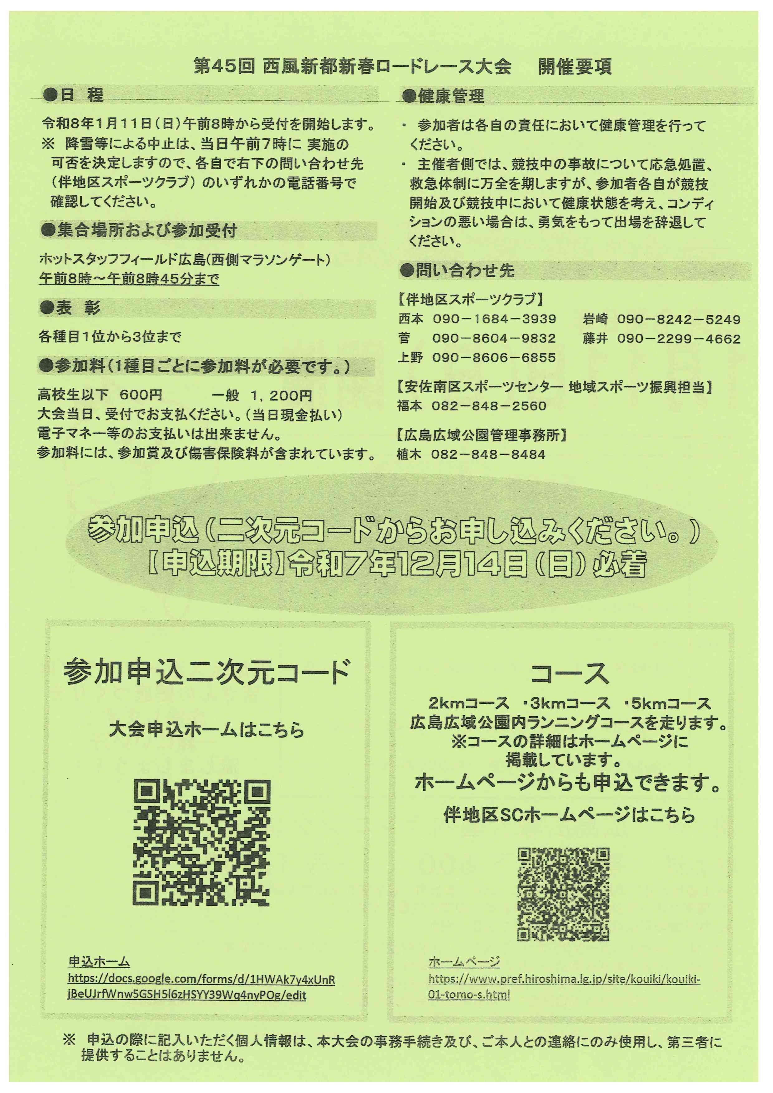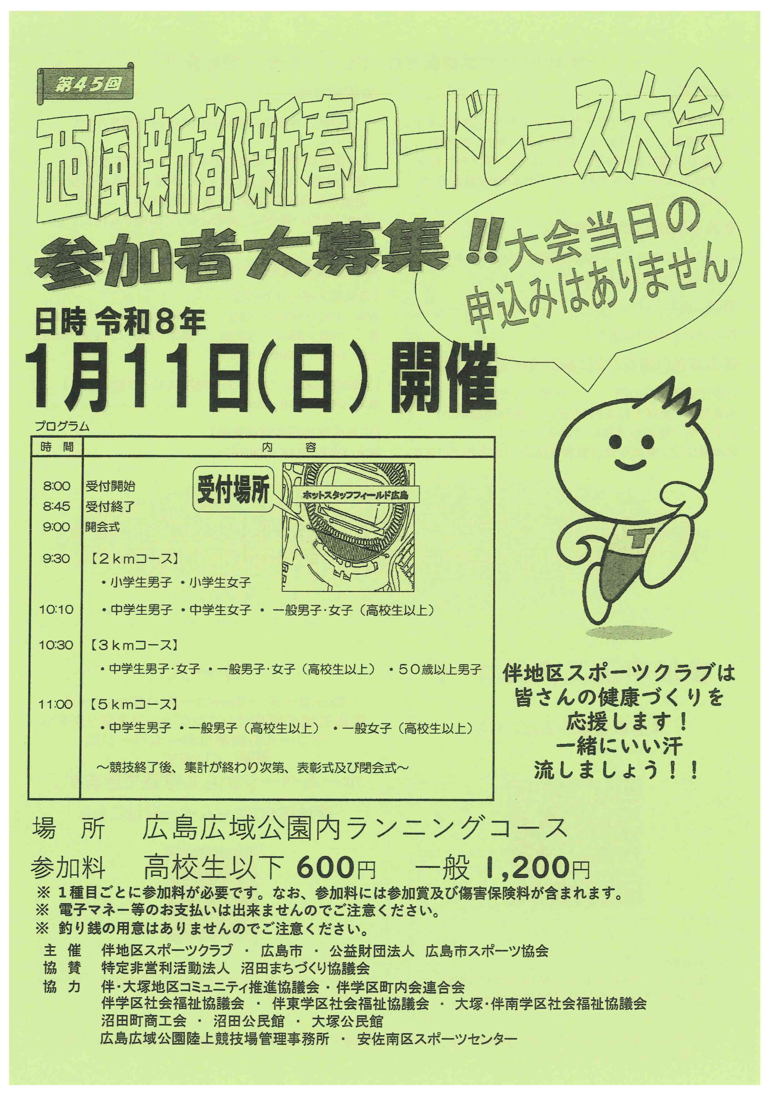 令和8年1月11日(日)第45回西風新都新春ロードレース大会参加者大募集!!