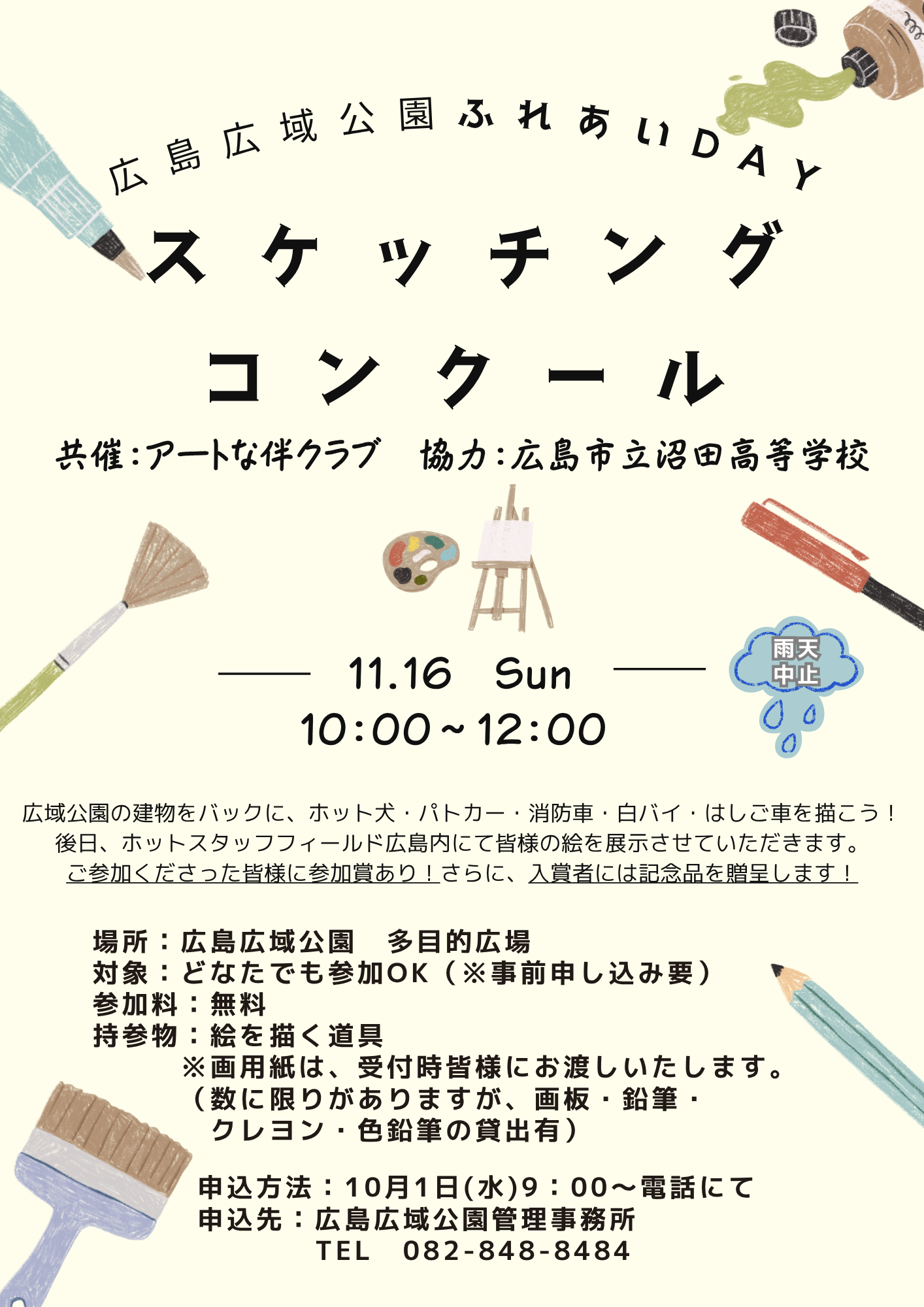 広域公園ふれあいDAYの中のイベントで、スケッチングコンクールを開催します。