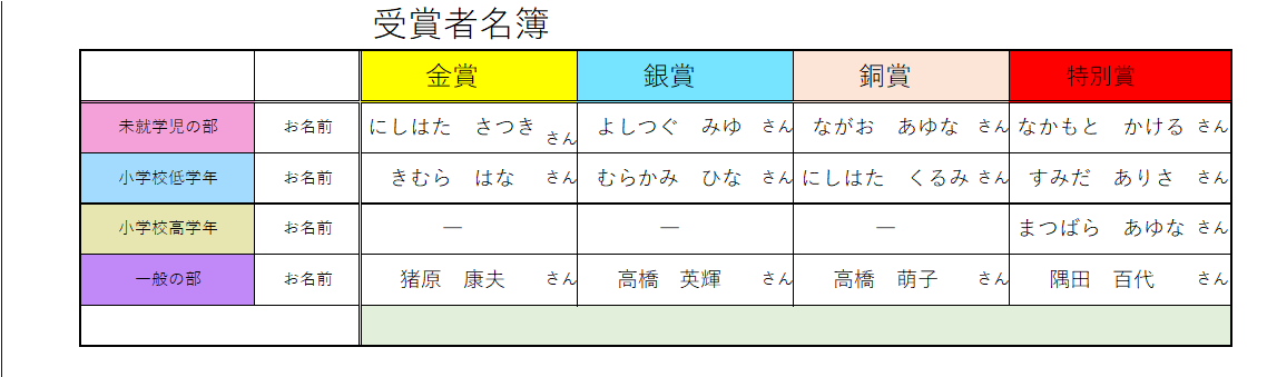 入賞された皆様は下記の方々になります。おめでとうございます!!