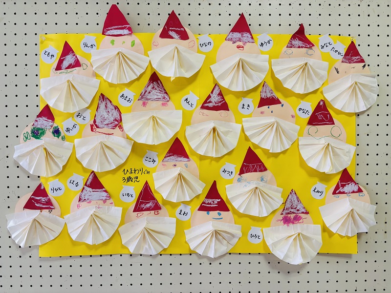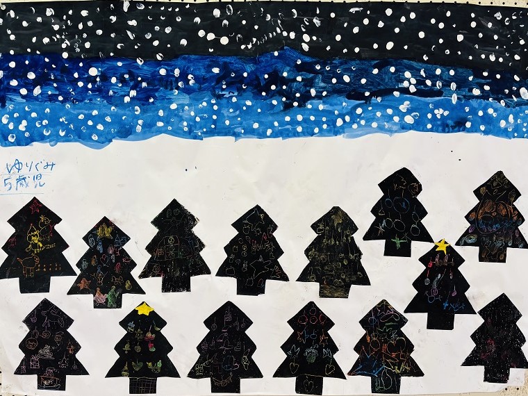 子どもたちの年齢ごとの個性が光る、あたたかく季節感あふれる作品が並んでいます。