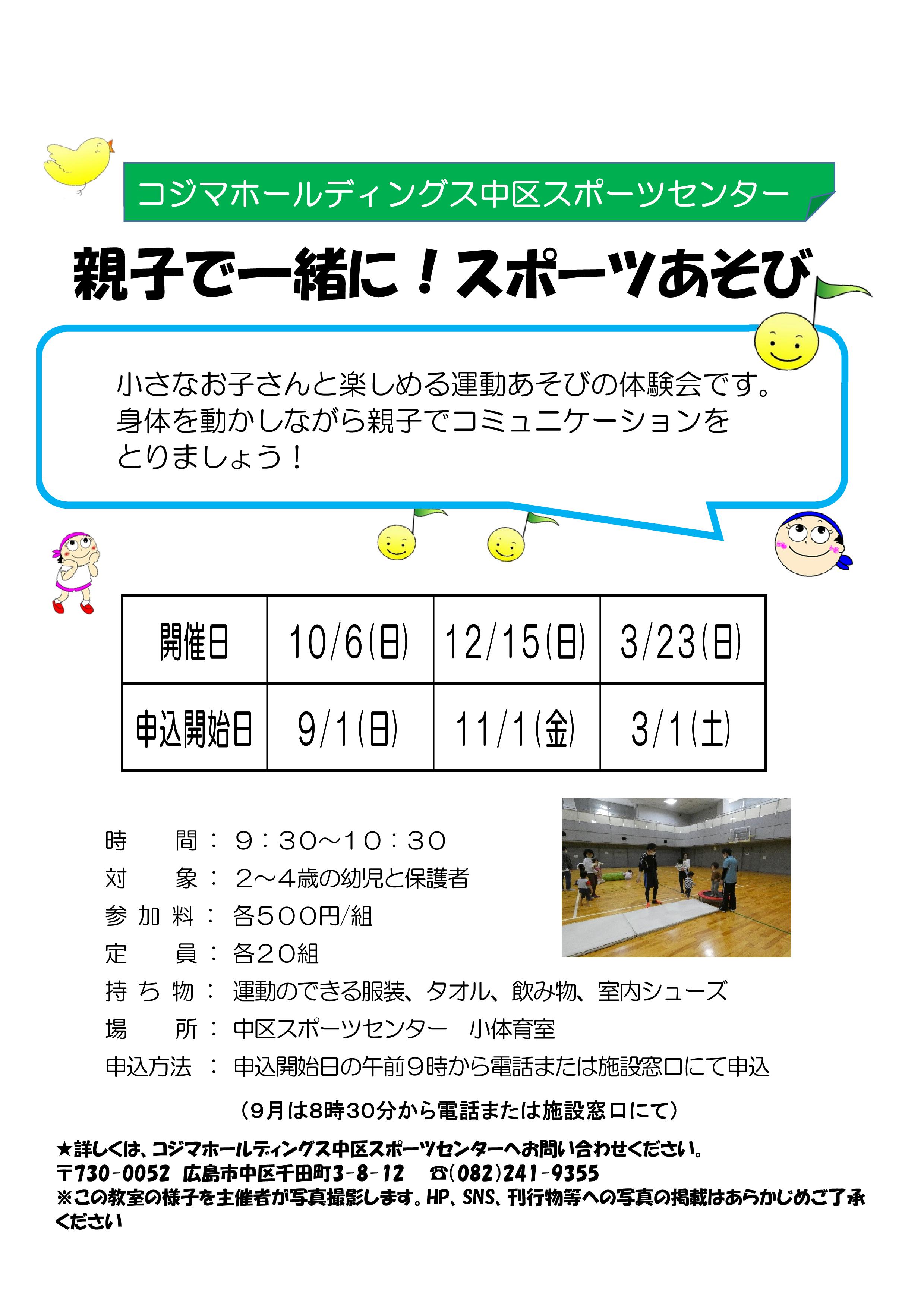 中区スポーツセンターでは今後も親子で楽しめる教室を行う予定です。