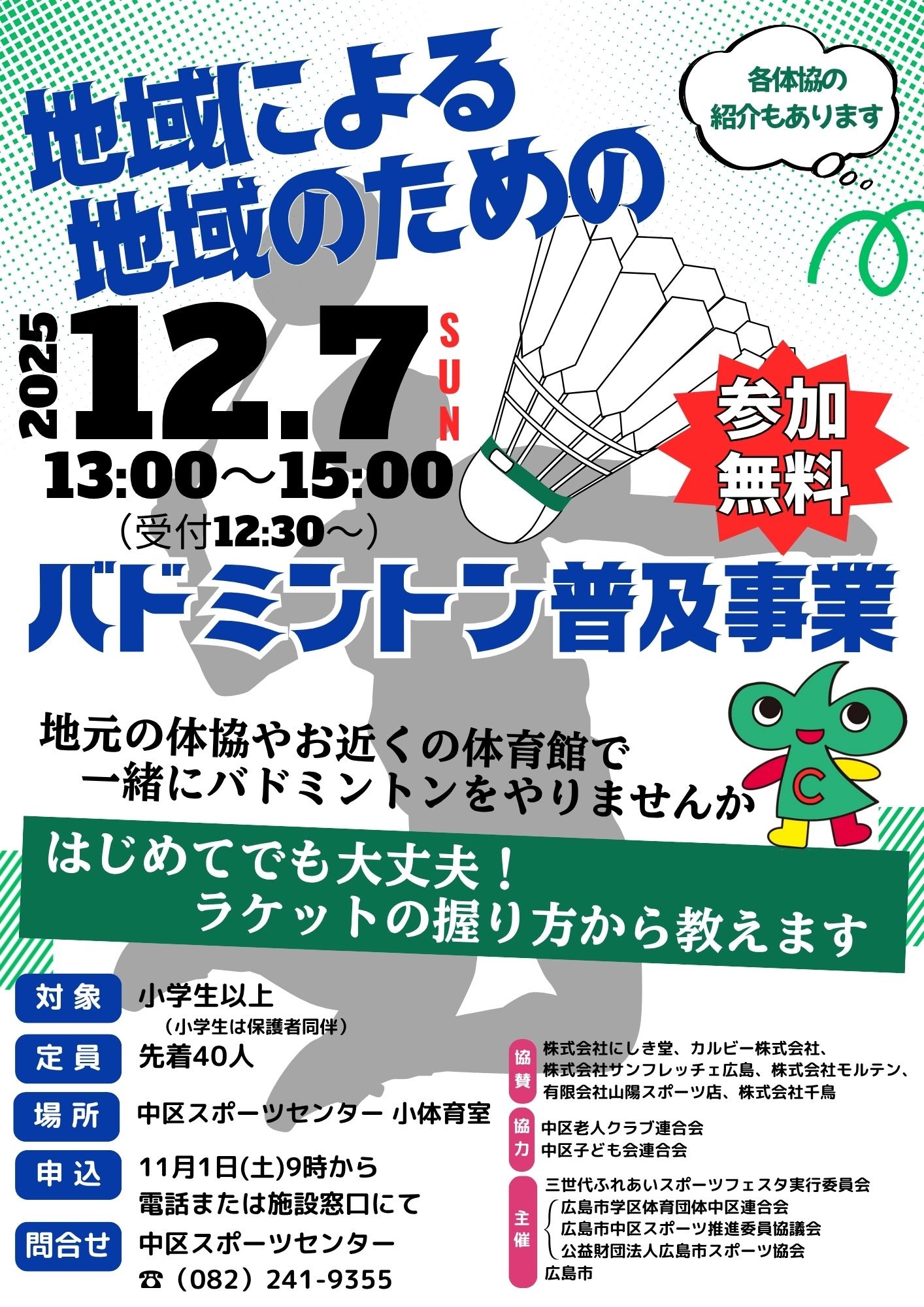 各学区体育協会のバドミントン部の紹介もあります。中区の活動や体協の部活動に興味のある方、何か運動をしたいと思っている方、この機会に地域の「体協」を知ってください。