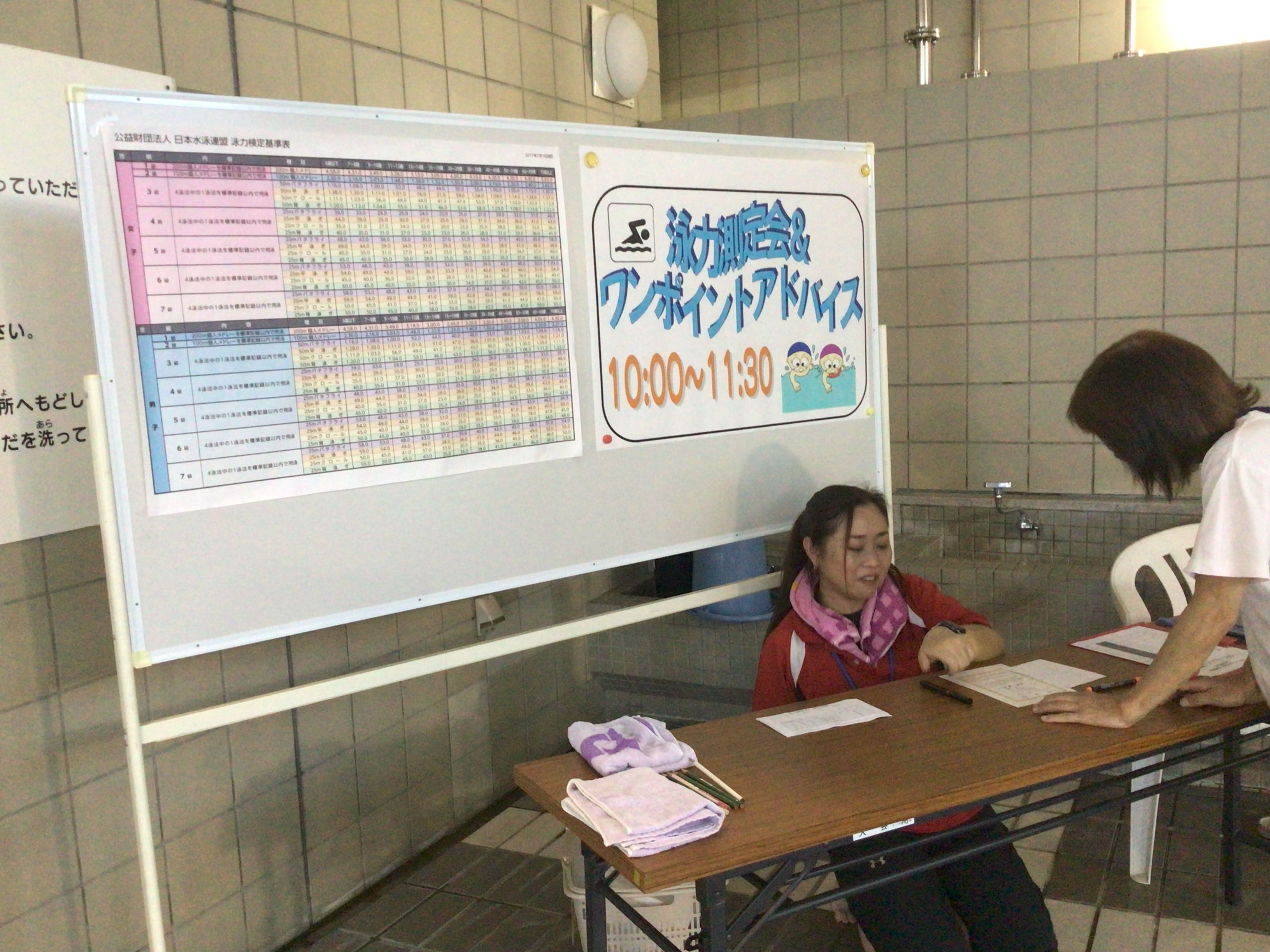 プール室では『泳力測定会&ワンポイントレッスン』を実施しました。参加者の泳力を測定し、泳ぎのワンポイントアドバイスを行いました。