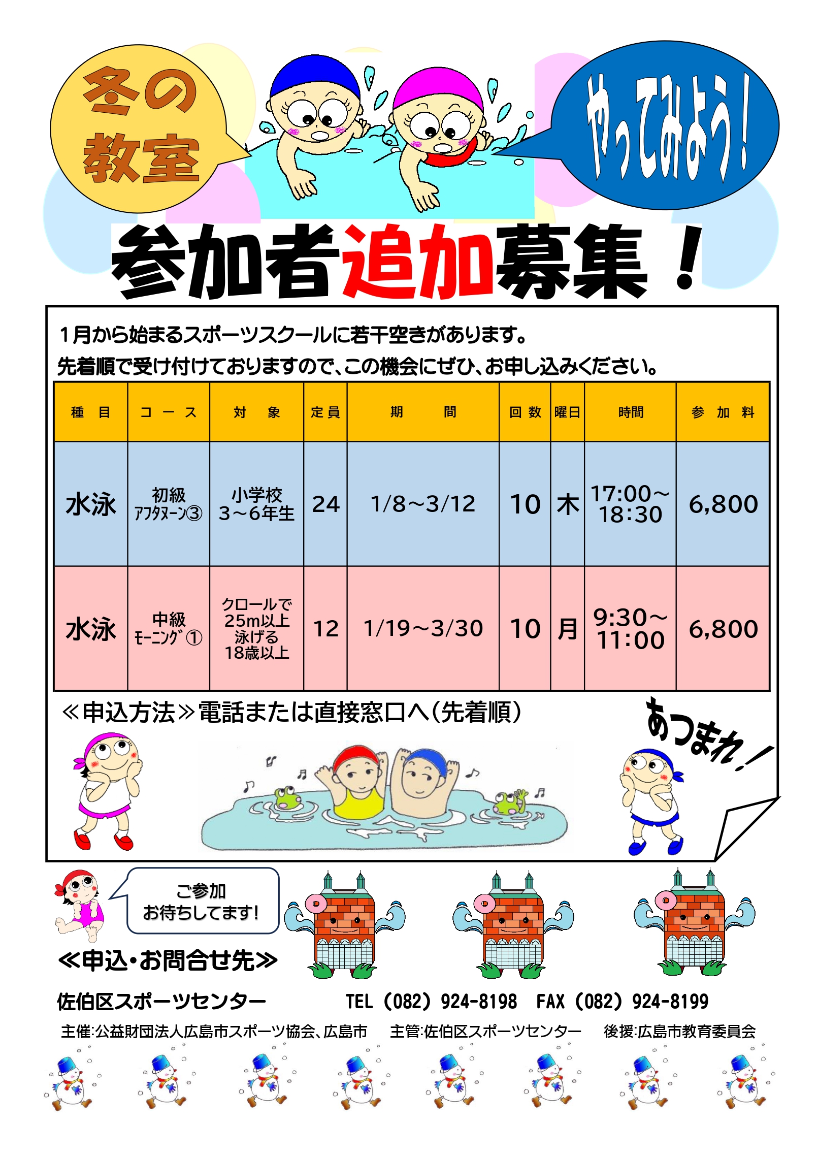 1月から始まる水泳教室に空きがあります!先着順で受け付けておりますので、この機会にぜひお申し込みください(^^♪