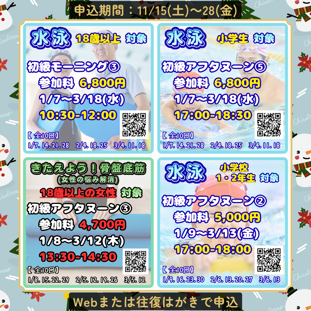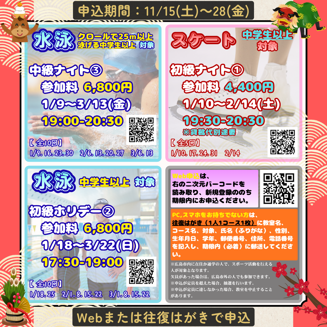 【ひろしんビッグウェーブ・マエダハウジング東区スポーツセンター】応募期間11/15(土)~28(金)のスポーツスクール!!!