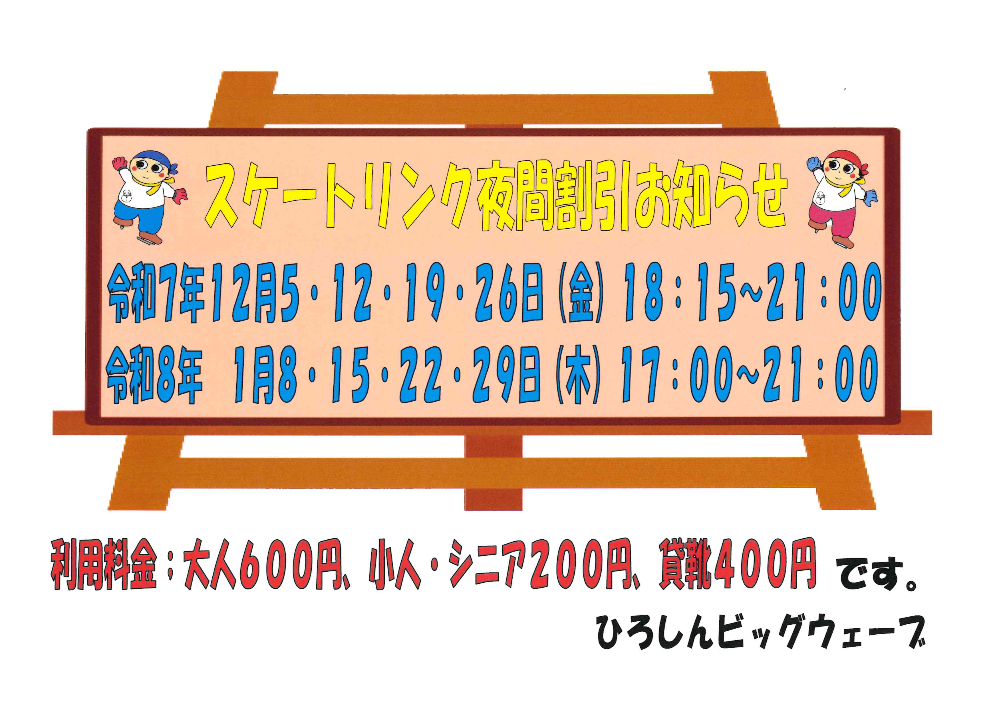 スケートリンク夜間割引料金について