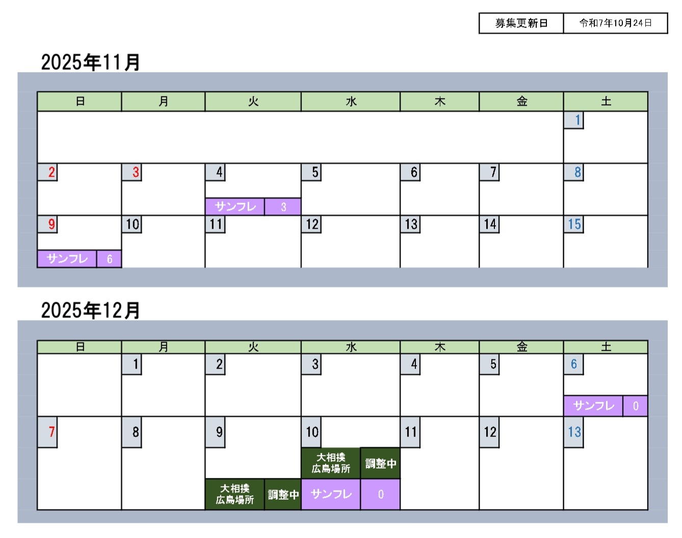 活動を希望する方は、スポーツ・サポート・センターまで、電話にて、ご連絡ください。先着で受け付けします。募集人数は、以下の通りです。