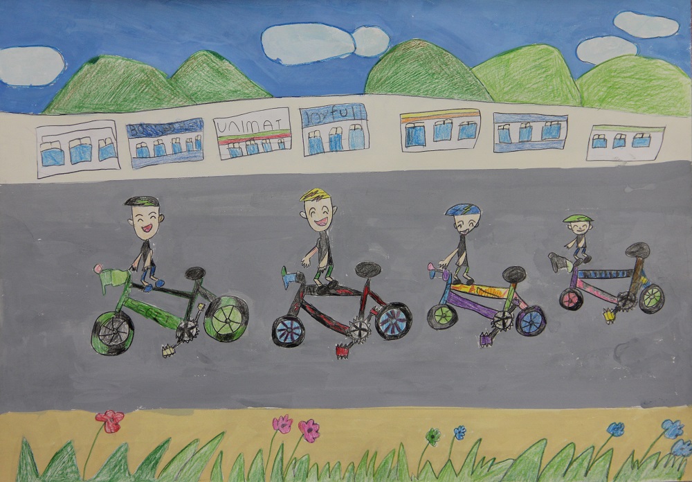 「父とロードバイクレース出じょう」 祗園小学校 2年 山根 志源 |